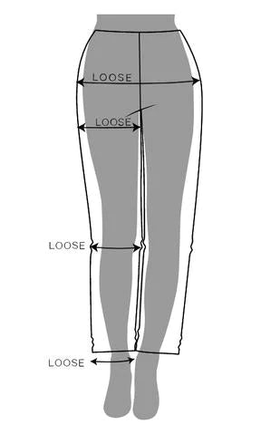 Die Relaxed-Passform hat denselben Beinschnitt wie Regular, ist aber von der Taille bis zum Fuß weiter und hat einen elastischen Bund.